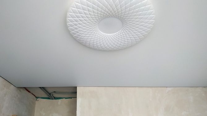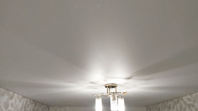 Монтаж потолка в гостиной 15 м2, полотно VISP M9001 (3.80)