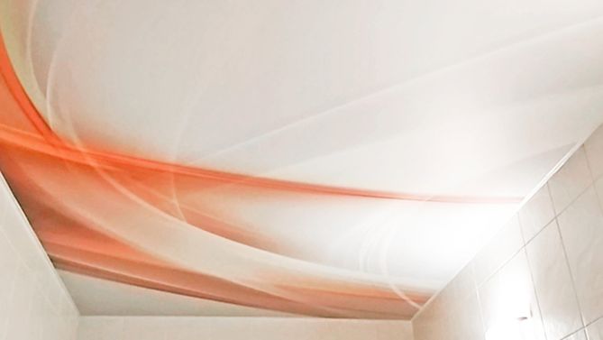 Сатиновый натяжной потолок 5,4 м2 в ванной с фотопечатью