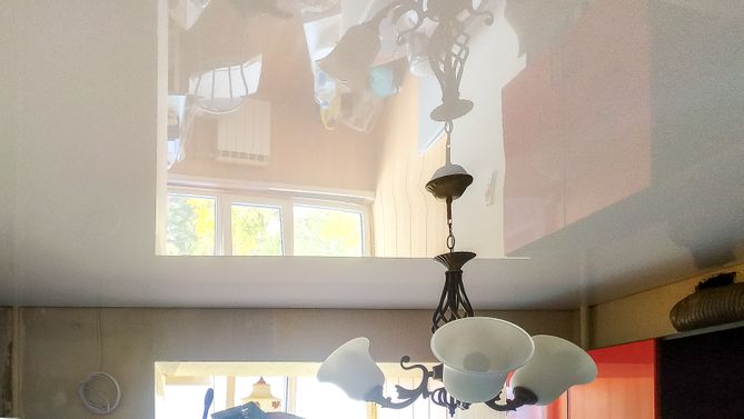 Глянцевый потолок на кухню 8,5 м2