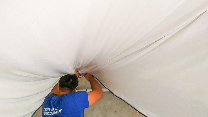 Глянцевый потолок 19 м2