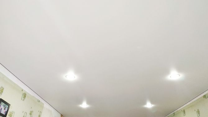 Монтаж потолка в гостиной 15 м2, полотно VISP M9001 (3.80)