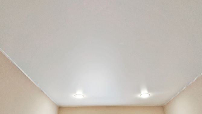 Бесшовный сатиновый натяжной потолок на кухню 10,7 м2