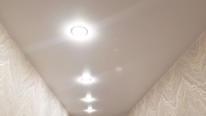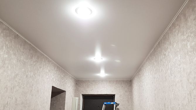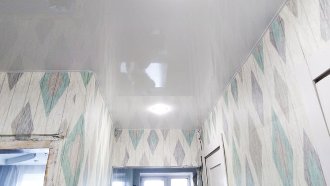 Бесшовный глянцевый натяжной потолок в прихожую 3,9 м2