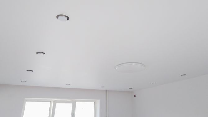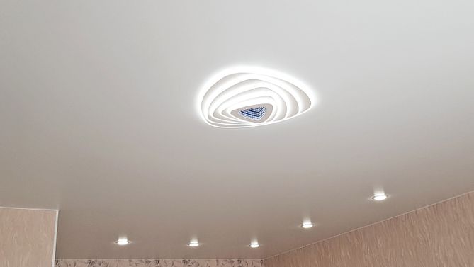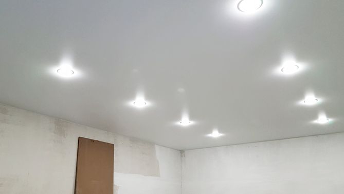 Монтаж потолка для зала 17 м2, полотно VISP M9001 (3.80)