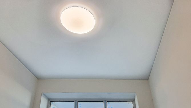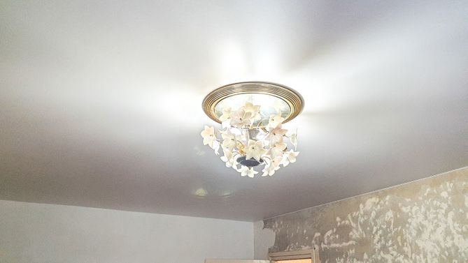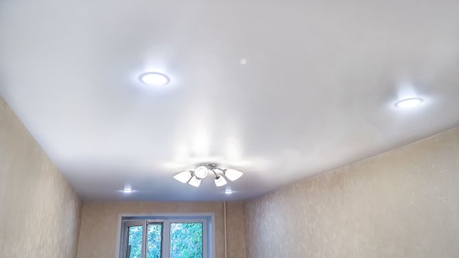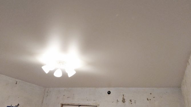 Монтаж потолка в гостиной 17 м2, полотно VISP M9001 (3.80)