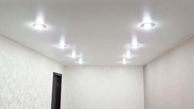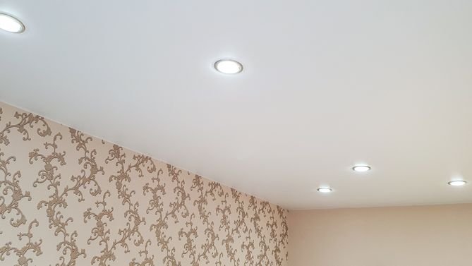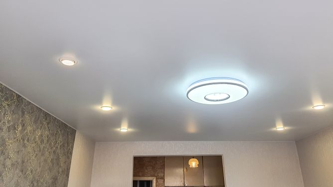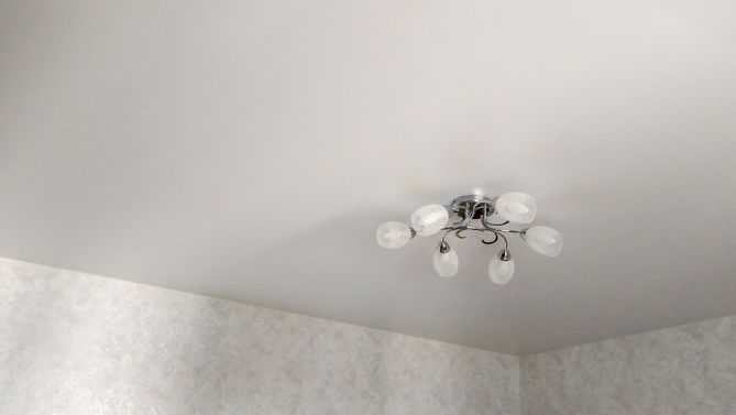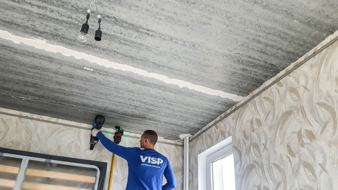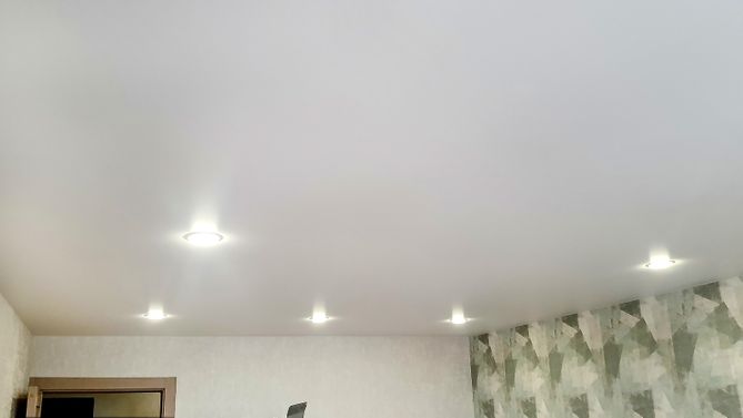 Монтаж потолка в гостиной 14 м2, полотно VISP M9001 (2.60)
