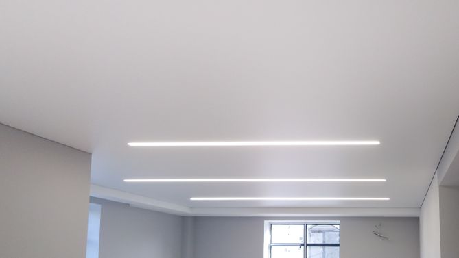 Монтаж потолка в гостиной 17 м2, полотно VISP L9001 (4.35)