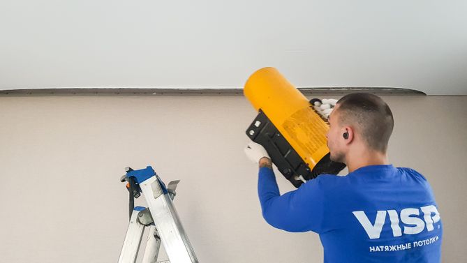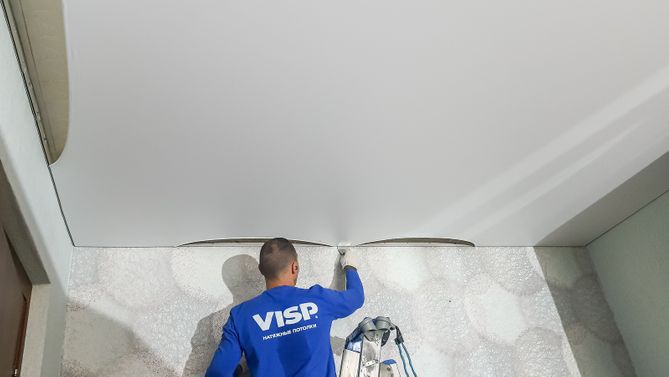 Монтаж потолка в гостиной 17 м2, полотно VISP L9001 (3.50)