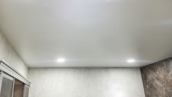 Монтаж потолка в гостиной 12 м2, полотно VISP L9001 (2.60)