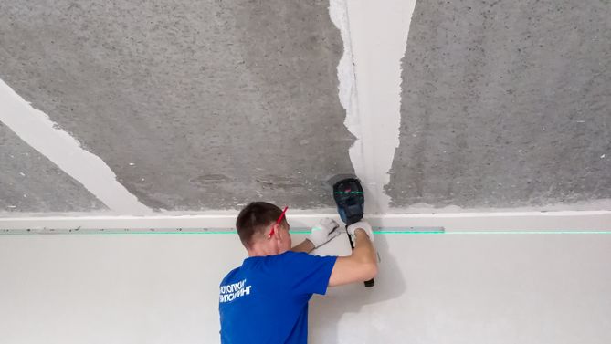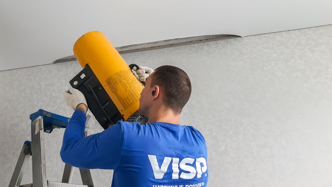 Монтаж потолка для зала 15 м2, полотно VISP M9001 (3.25)