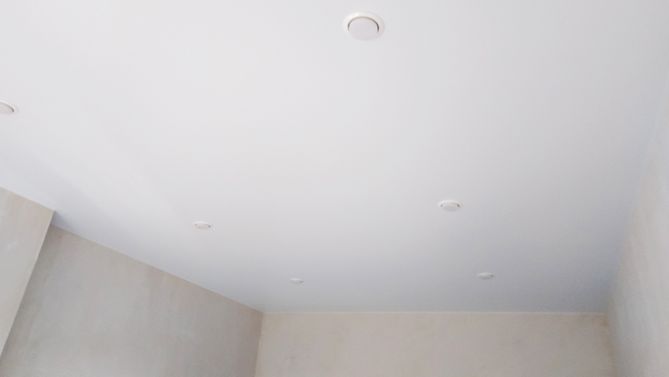 Монтаж потолка в гостиной 38 м2, полотно VISP M9001 (5.45)