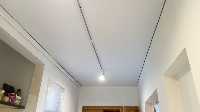 Монтаж потолка в коридоре 9 м2, полотно VISP S9020 (3.25)
