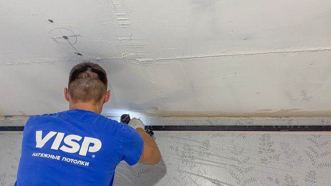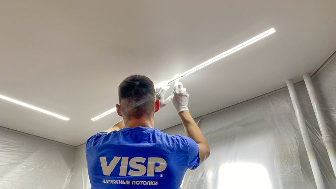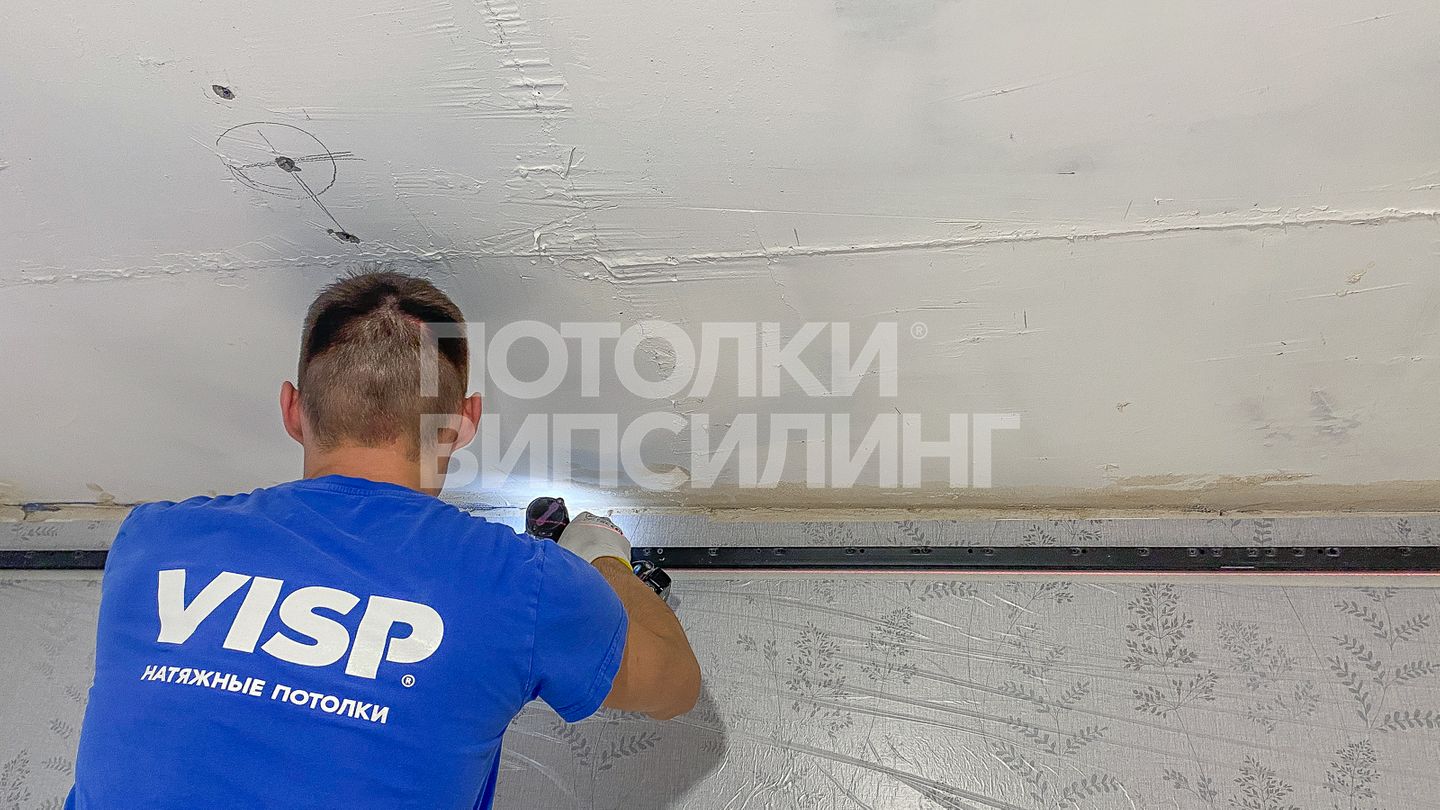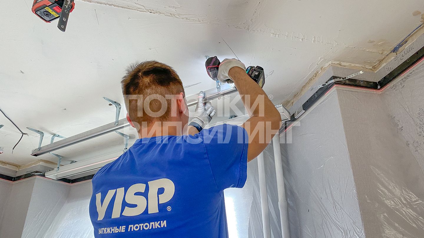 Монтаж потолка с профилем VISP BLACK 241 и полотном VISP M9001 (3.50) 11 м2 в квартире