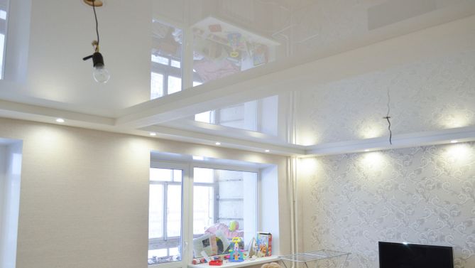 Здравствуйте, я выбрала Випсилинг, потому что первый потолок был сделан с небольшим изъяном в другой компании, поэтому, в городе я увидела щит Випсилинг и решила обратиться к ним. Перед этим я зашла в интернет, посмотрела отзывы, посмотрела портфолио, и решила заказать потолки в свою квартиру. Потолки были сделаны качественно, без изъянов. Ребята сделали проводку грамотно и вот, — вы видите результат.