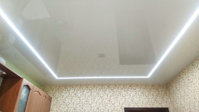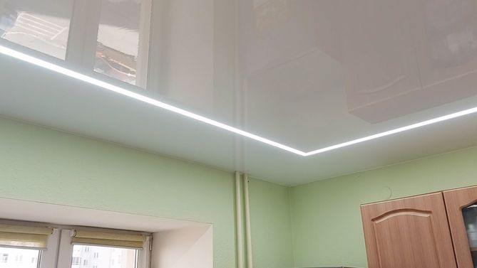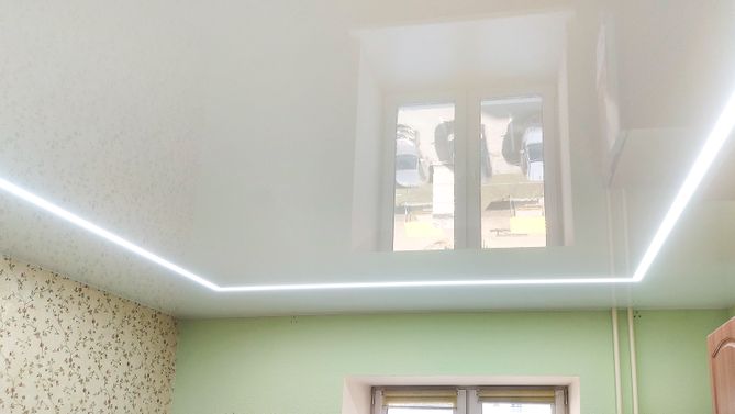 Глянцевый потолок на кухню 8,5 м2