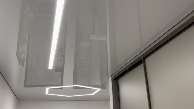 Глянцевый потолок на кухню 8,5 м2