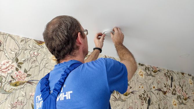 Здравствуйте, я выбрала Випсилинг, потому что первый потолок был сделан с небольшим изъяном в другой компании, поэтому, в городе я увидела щит Випсилинг и решила обратиться к ним. Перед этим я зашла в интернет, посмотрела отзывы, посмотрела портфолио, и решила заказать потолки в свою квартиру. Потолки были сделаны качественно, без изъянов. Ребята сделали проводку грамотно и вот, — вы видите результат.