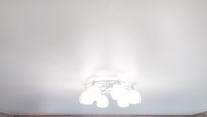 Бесшовный матовый натяжной потолок в гостиную 19,5 м2