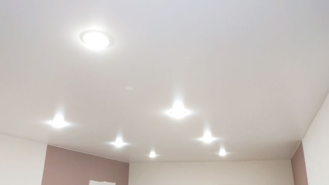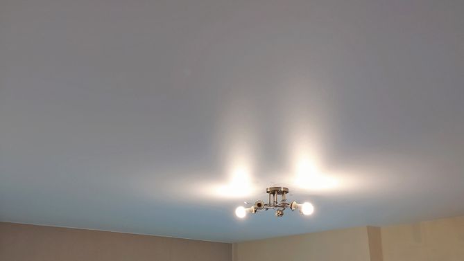 Бесшовный сатиновый натяжной потолок для зала 15,8 м2