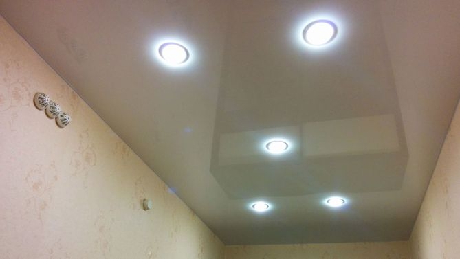 Бесшовный глянцевый натяжной потолок в прихожую 5,9 м2