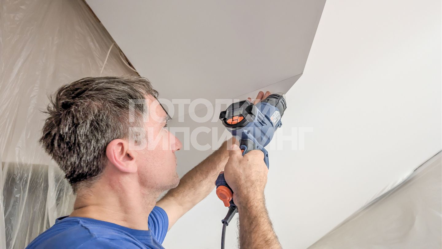 Но даже после этих манипуляций вы можете разглядеть в нише крепежные элементы. Поэтому мы не рекомендуем выбирать профиль с прямым заправлением полотна в помещениях, где есть хотя бы один внешний угол.