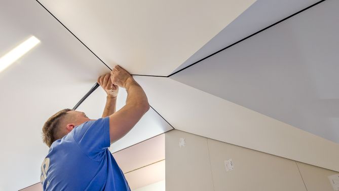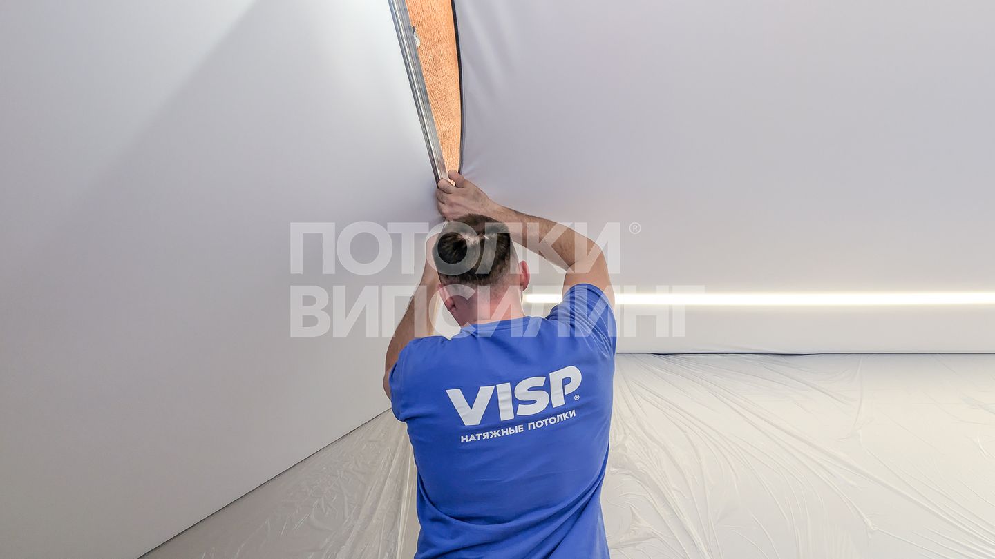 В помещениях большой площади, чтобы полотно не провисало, рекомендуем использовать теневой разделительный профиль.