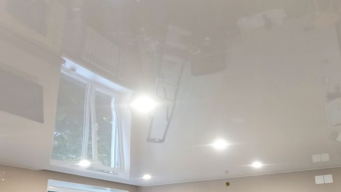 Бесшовный глянцевый натяжной потолок в прихожую 5,9 м2