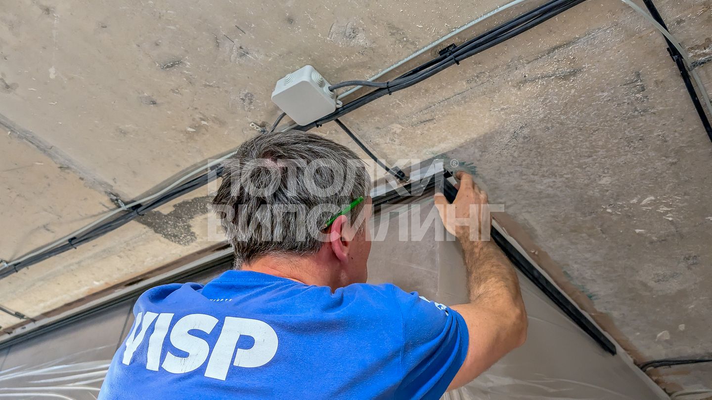 Монтаж потолка с профилем VISP BLACK 241 и полотном VISP M9001 (3.25) 8 м2 на кухне