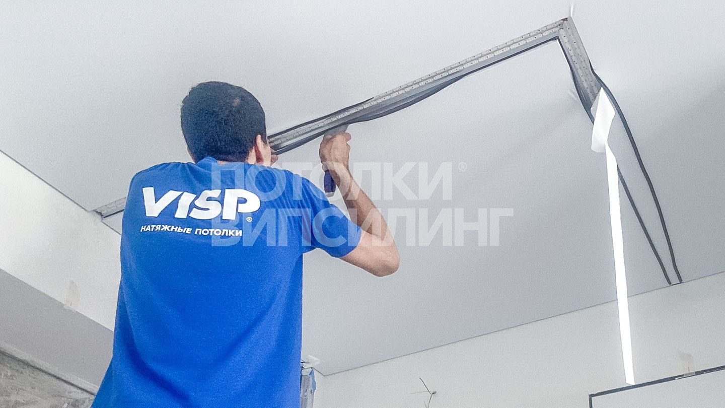 В помещениях большой площади, чтобы полотно не провисало, рекомендуем использовать теневой разделительный профиль.
