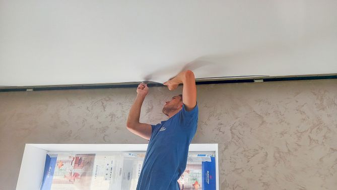 Глянцевый потолок в ванную 5,7 м2