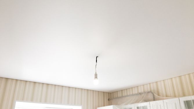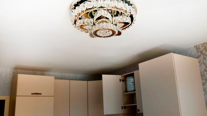 Бесшовный сатиновый натяжной потолок на кухню 8,5 м2