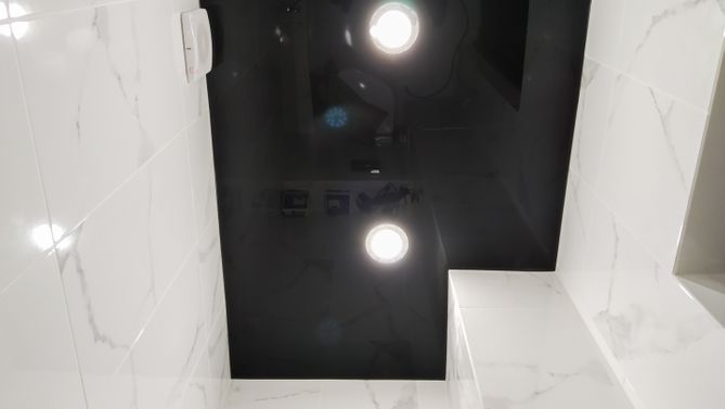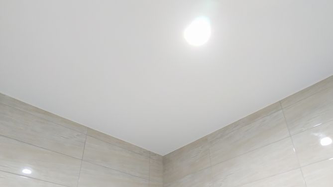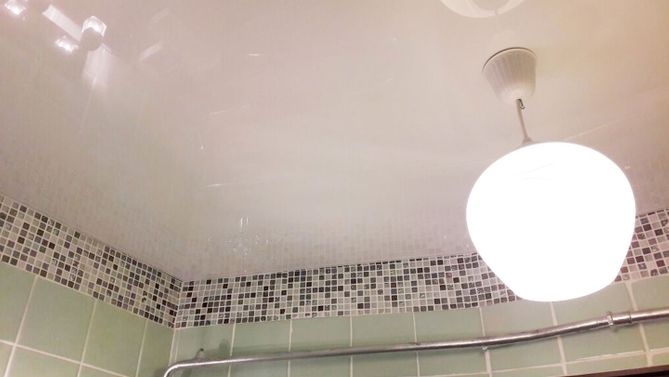 Бесшовный глянцевый натяжной потолок в ванную комнату 5,2 м2