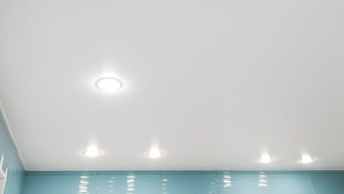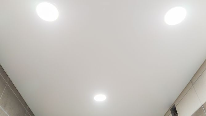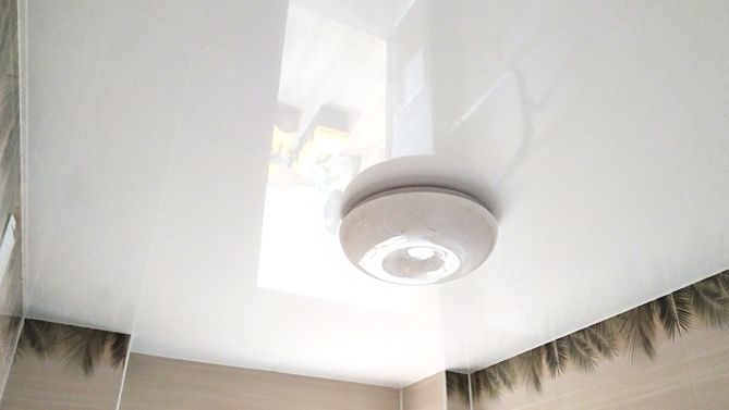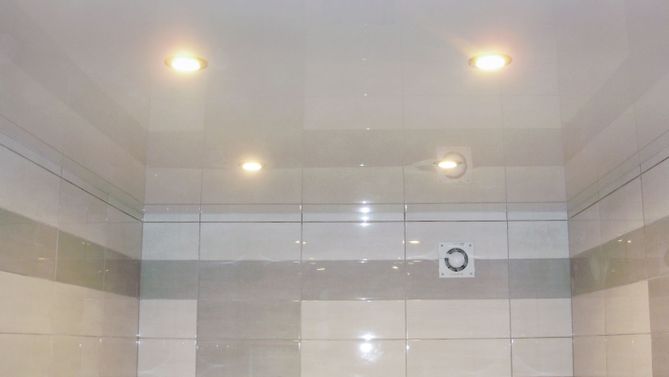 Бесшовный глянцевый натяжной потолок в ванную комнату 2,7 м2