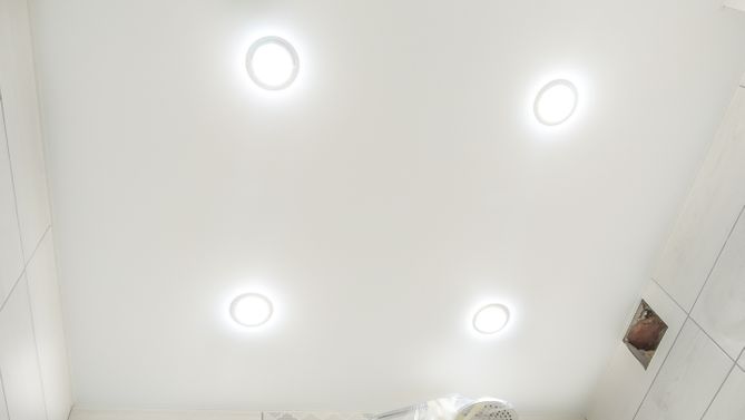 Монтаж потолка в ванной 2 м2, полотно VISP L9001 (1.40)