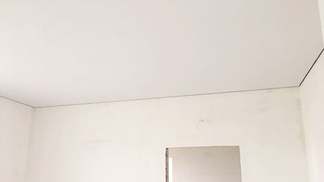 Бесшовный матовый натяжной потолок в спальню 11,4 м2