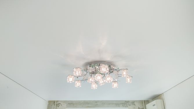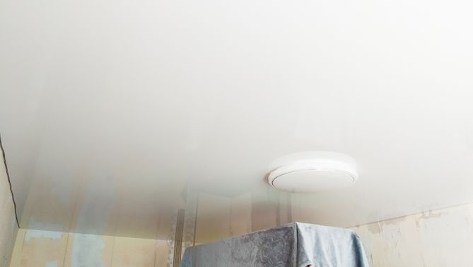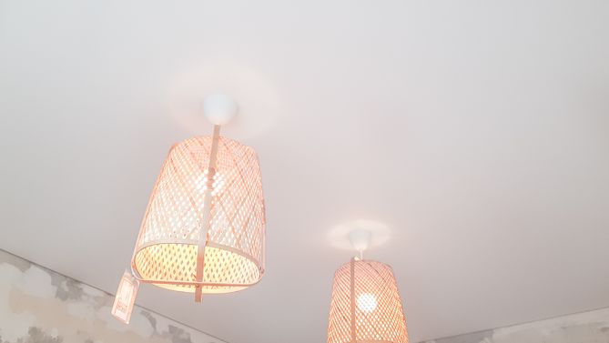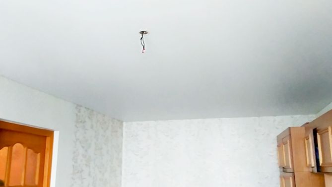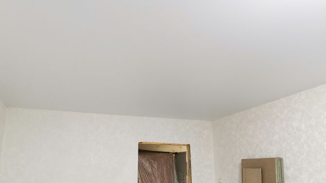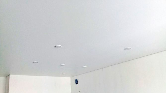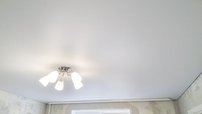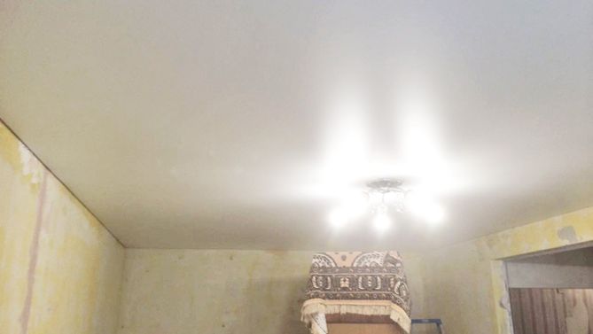 Монтаж потолка в гостиной 17 м2, полотно VISP M9001 (3.80)