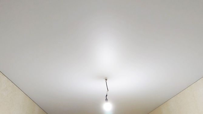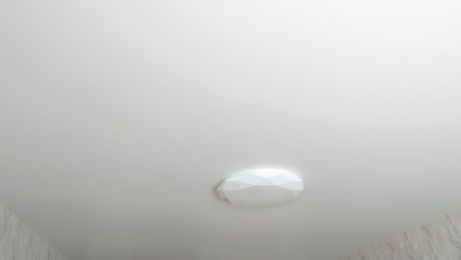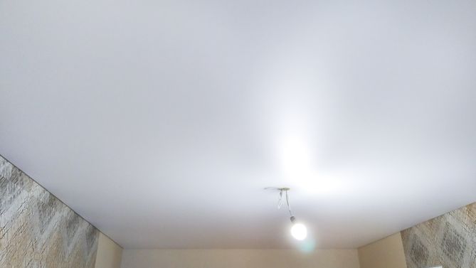 Бесшовный матовый натяжной потолок в гостиную 16,8 м2