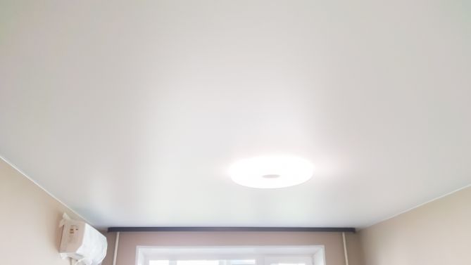 Бесшовный матовый натяжной потолок в гостиную 19,2 м2