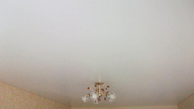 Бесшовный сатиновый натяжной потолок в гостиную 17,5 м2