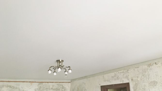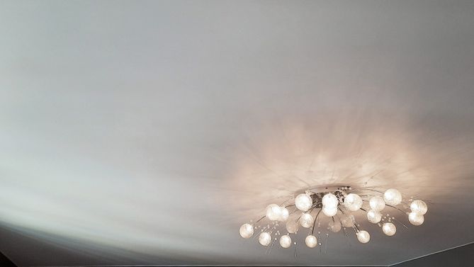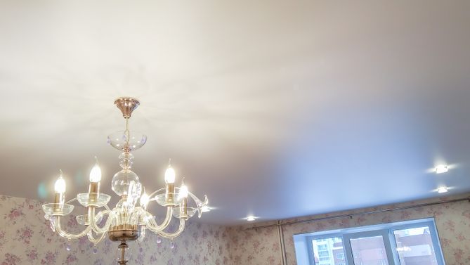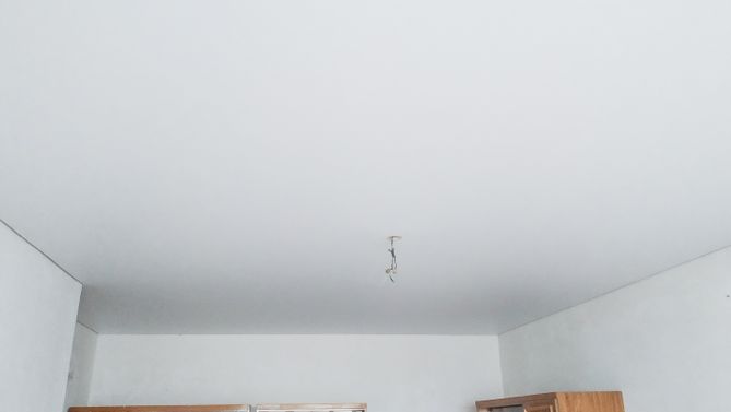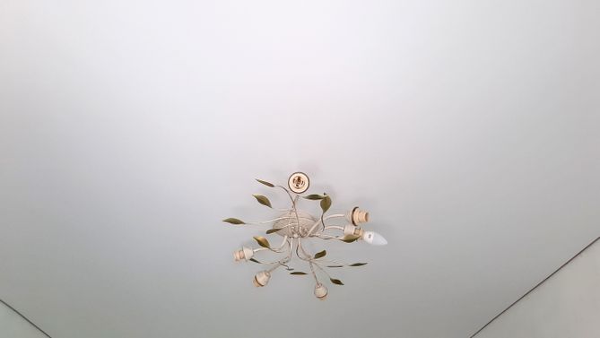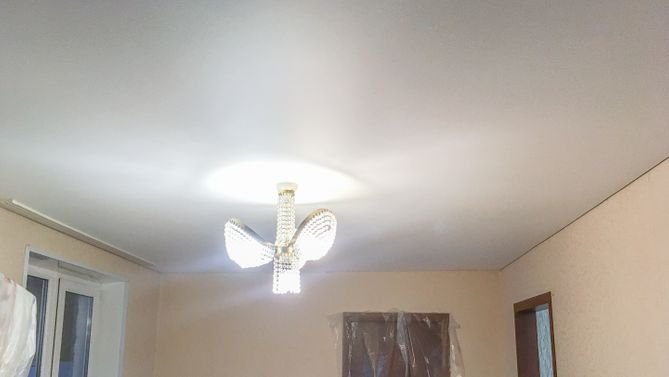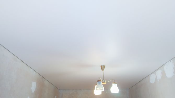 Монтаж потолка в гостиной 17 м2, полотно VISP M9001 (3.80)