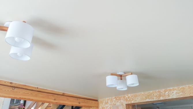 Монтаж потолка в деревянном доме 27 м2, полотно VISP S9057 (3.50)