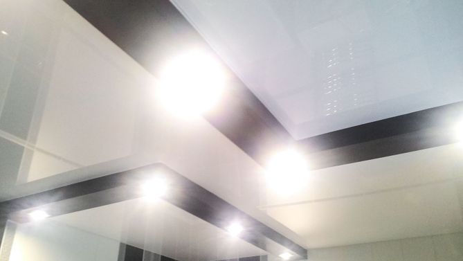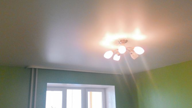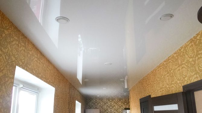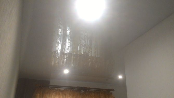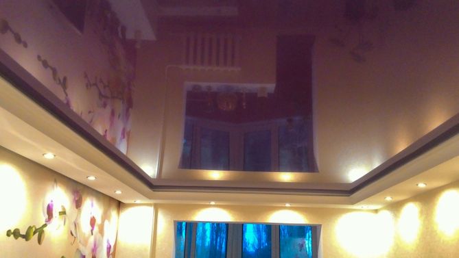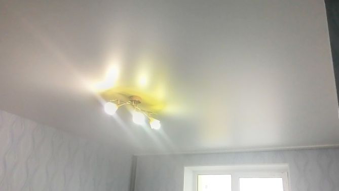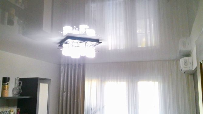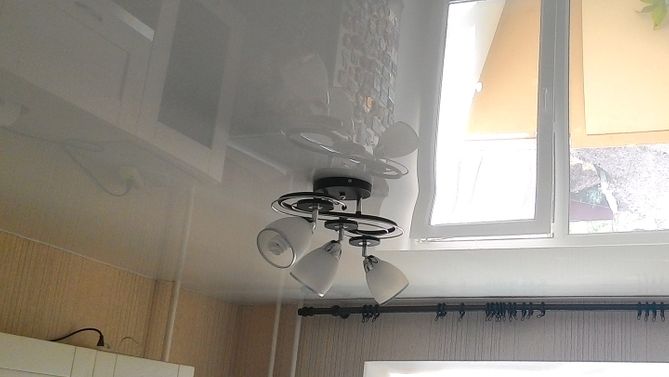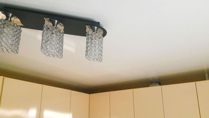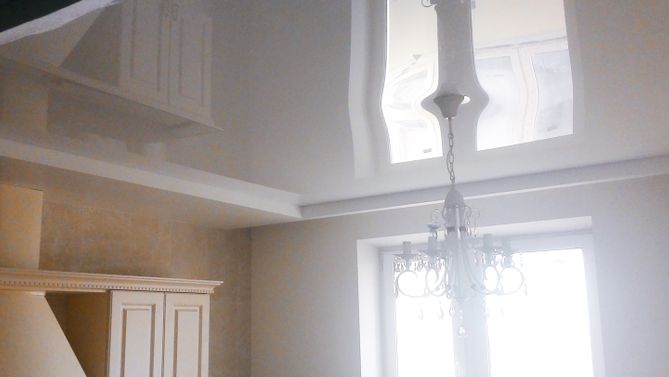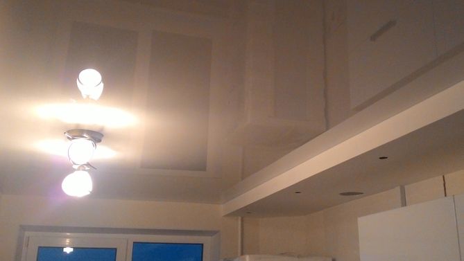 Бесшовный глянцевый натяжной потолок на кухню 8,5 м2