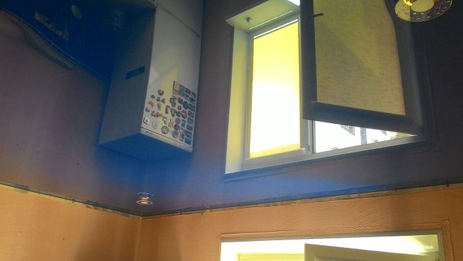 Бесшовный глянцевый натяжной потолок на кухню 8,3 м2