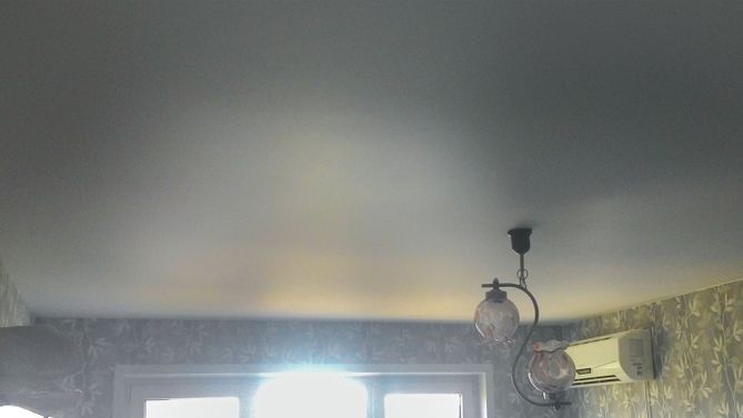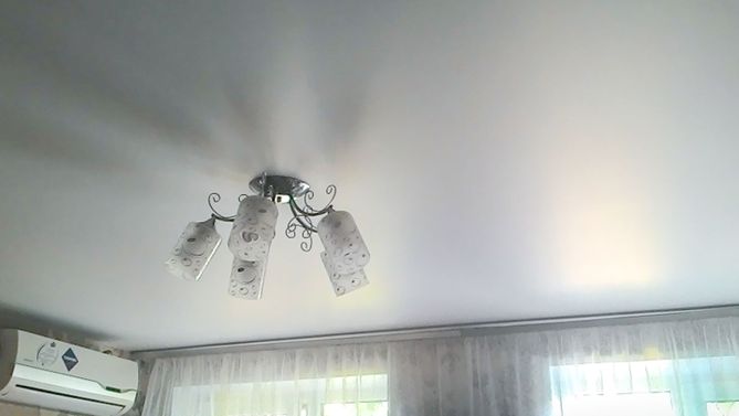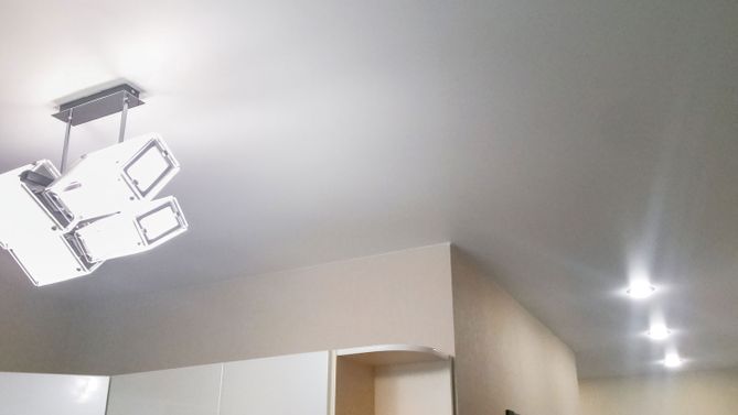 Бесшовный сатиновый натяжной потолок на кухню 7,4 м2