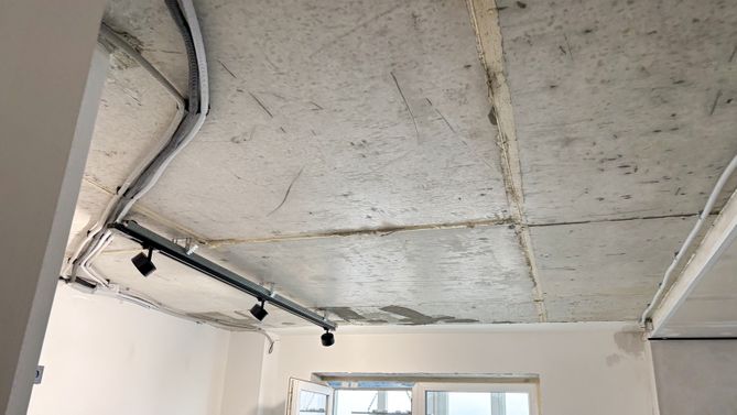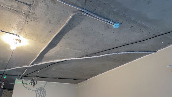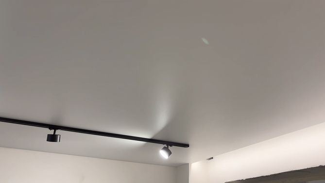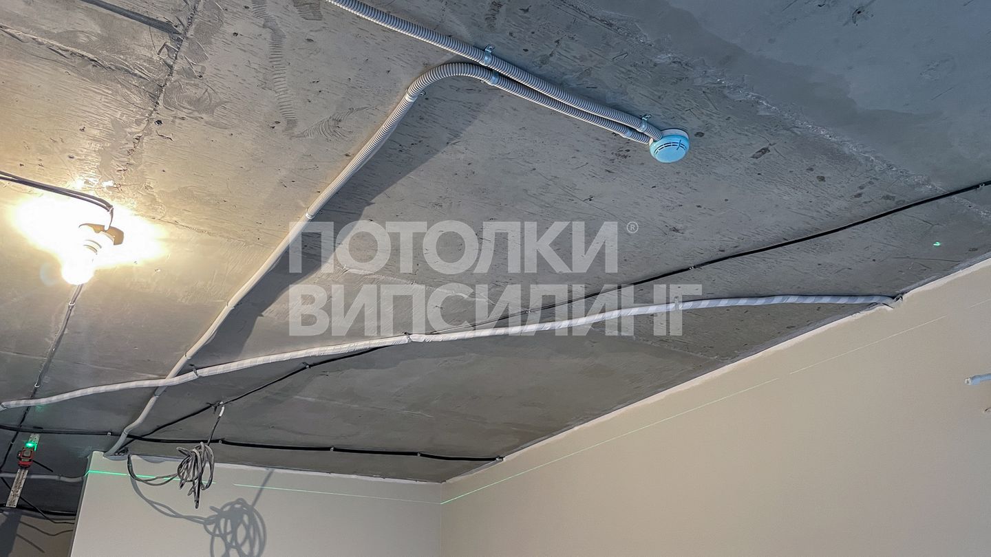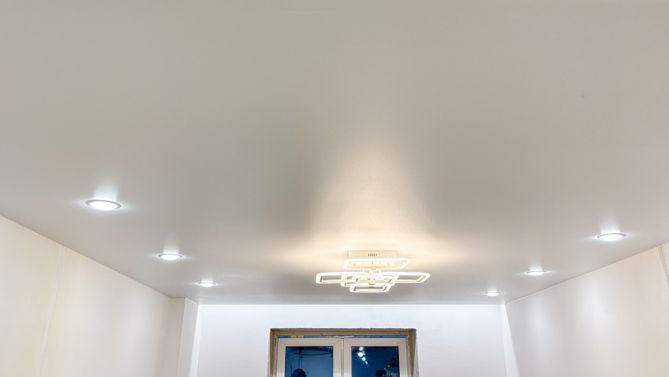 Натяжное полотно скрывает электропроводку, коммуникации и дефекты базового потолка