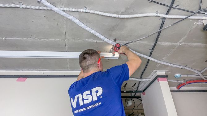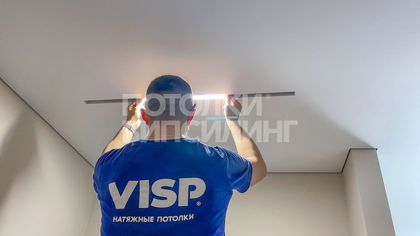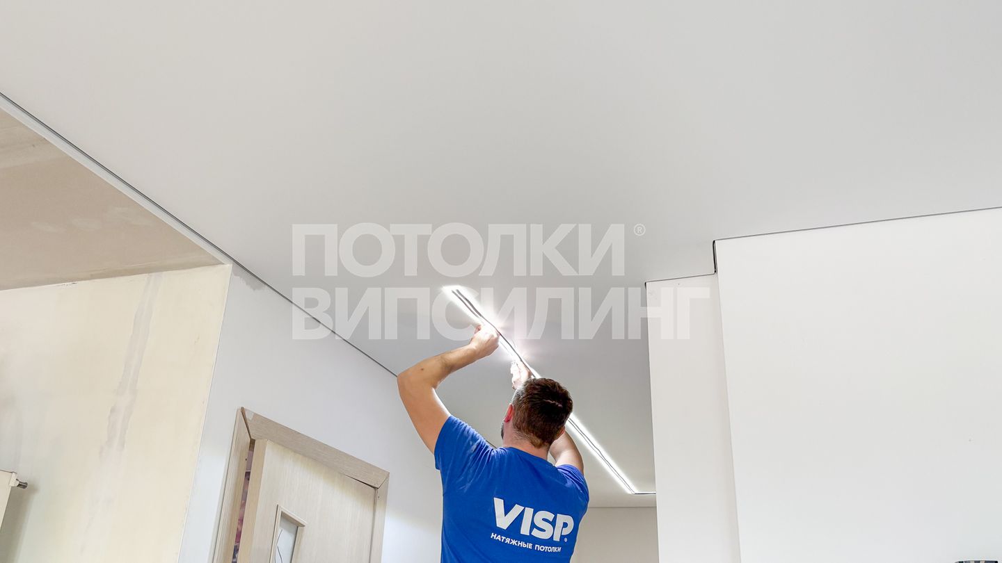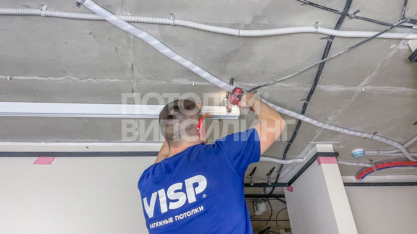 Монтаж потолка с профилем VISP BLACK 241 и полотном VISP M9001 (3.80) 18 м2 в квартире