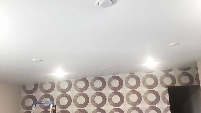 Монтаж потолка для зала 17 м2, полотно VISP M9001 (3.80)