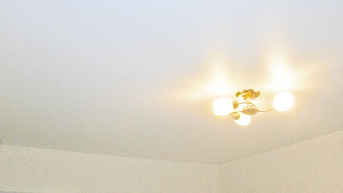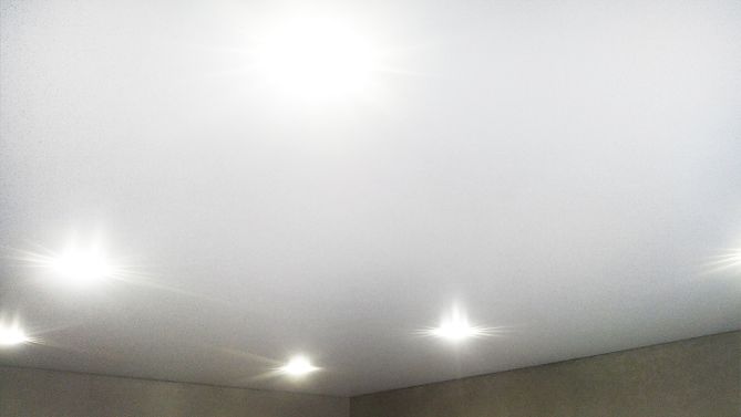 Бесшовный сатиновый натяжной потолок для зала 21,2 м2