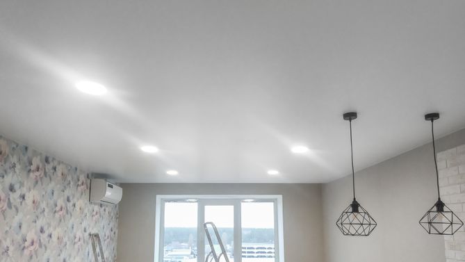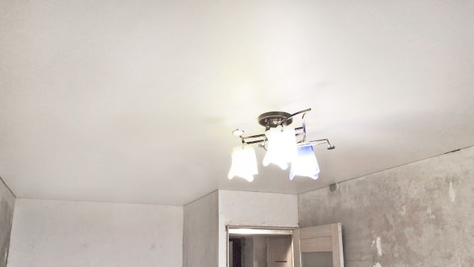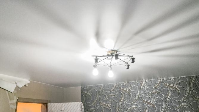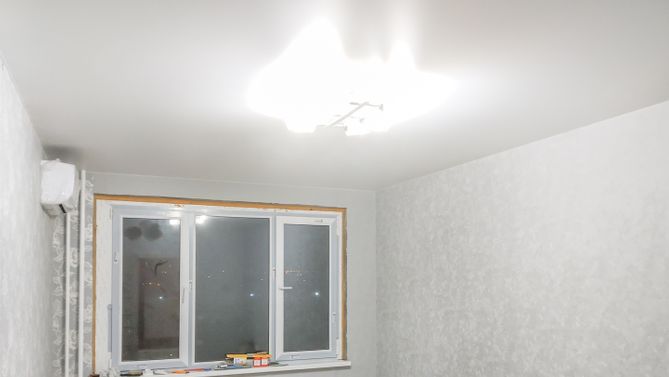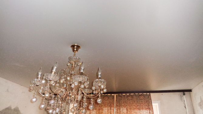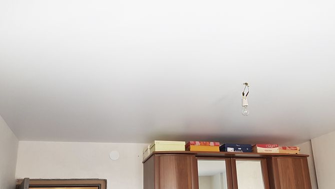 Бесшовный сатиновый натяжной потолок в квартире 18,8 м2