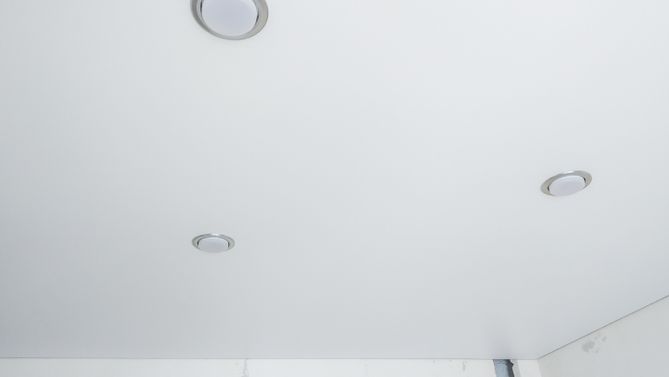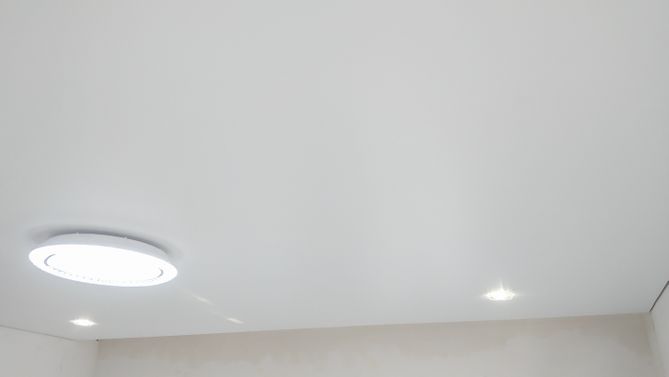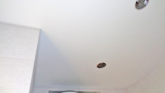 Бесшовный сатиновый натяжной потолок в ванную комнату 5,1 м2